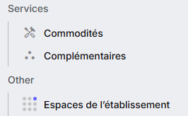 Renseignez-les au niveau du lieu, dans les menus “Commodités” et “Complémentaires” du détail du lie).