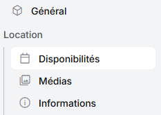 Rendez-vous sur votre interface d’édition d’annonce et dans vos Lieux. Cliquez sur le lieu concerné, puis allez dans le menu « Disponibilités »