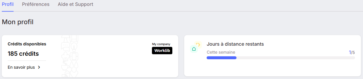 Dans le cadre de la politique de travail à distance adoptée par votre entreprise, vous avez accès à un nombre défini de jours pour télétravailler, ainsi qu'à un budget alloué sous forme de crédits pour vos réservations.